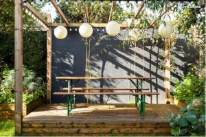 Another inexpensive yet effective shade solution is to string up rows of paper lanterns. Sure, this could be a time-consuming project and could get fiddly, but the final result will be truly stunning. And the more lanterns you hang, the more shade you’ll encourage. Take the idea further and hang solar-powered LED lanterns, such as Ikea’s range, and you can extend your party into the evening.
