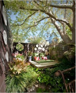 If you don’t have any trees or tall foliage to offer natural shade, try constructing your own by hanging bushy or large-leaved plants, such as ferns and staghorns, around your seating area to diffuse or block the sunlight. Not only do hanging plants add a tranquil element to an outdoor area, they’ll create a garden ‘ceiling’ that will draw the eye upwards, increasing the sense of space.